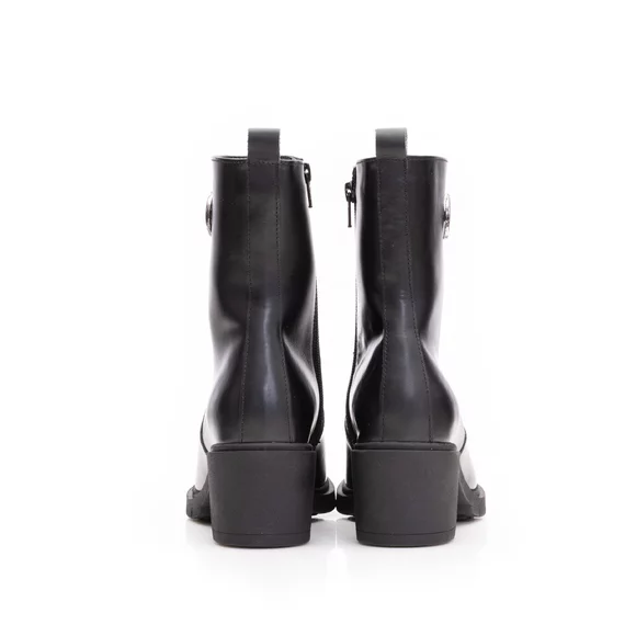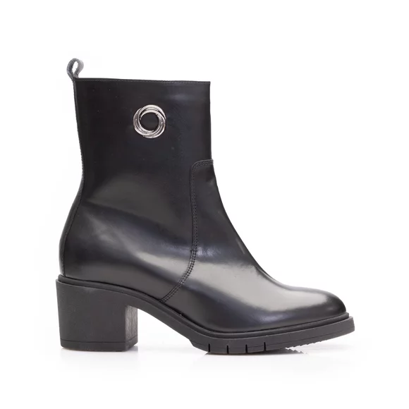 - Botine damă din piele naturală box cu toc gros. Botinele au interiorul căptușit cu material textil iar pe lateral au un accesoriu metalic.