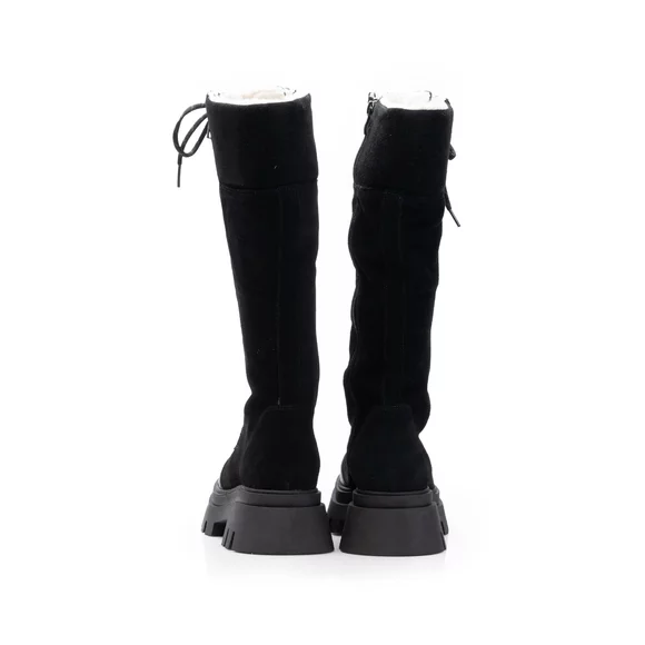 Cizme dama cu siret din piele naturala Leofex- 439 Negru velur