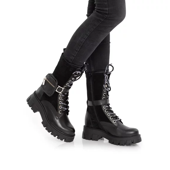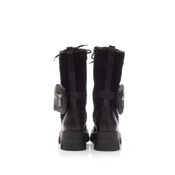 - Cizme dama scurte din piele naturala box si velur cu catarama ajustabila si buzunar decorativ in zona gleznei. Poți purta aceste cizme moderne și atrăgătoare în sezonul rece deoarece interiorul este captusit cu material textil.