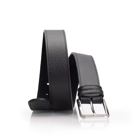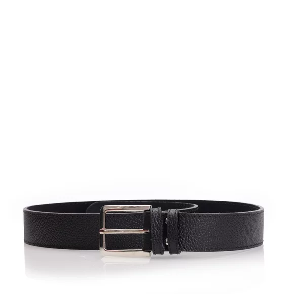 Curea unisex din piele naturală - Negru box presat 4 cm