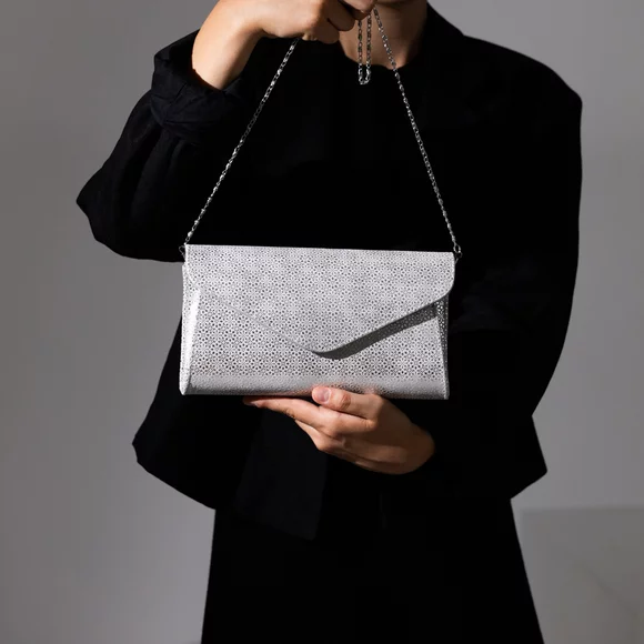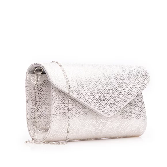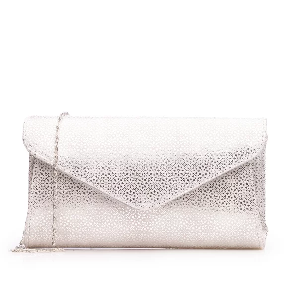 Geantă plic damă din piele naturală - 4014 Alb Argintiu Velur Box