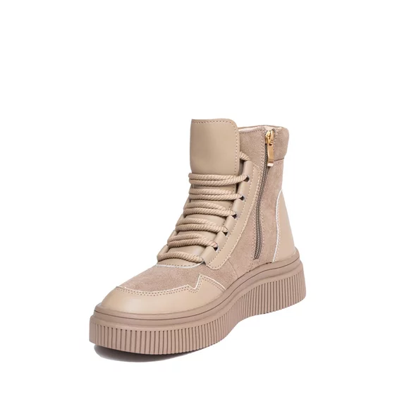 - Ghete damă din piele naturală box și velur. Ghetele au șiretul decorativ iar închiderea se face cu fermoar pe partea interioară