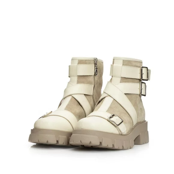 Ghete damă din piele naturală, Leofex - 332 Crem Box Velur
