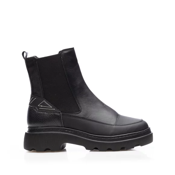 - Ghete damă din piele naturală box cu talpa groasă dar ușoară, perfecte pentru sezonul rece deoarece interiorul este îmblănit cu blăniță sintetică mai inclusiv pe talonet. Prezintă elastic pe părțile laterale.