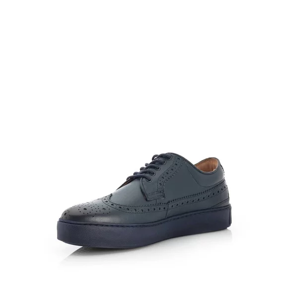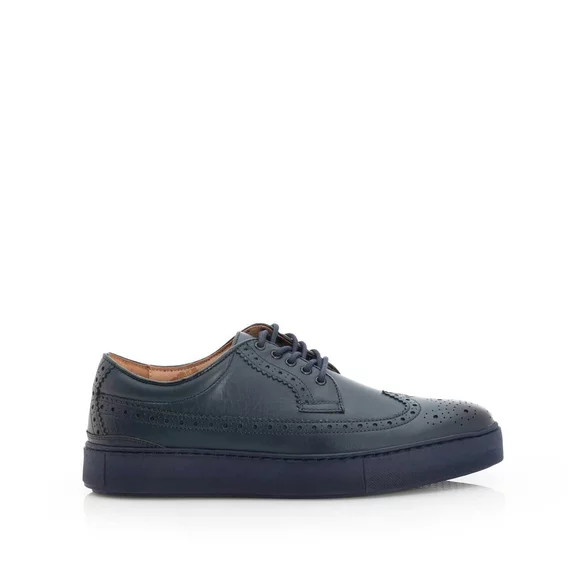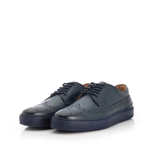 - Pantofi casual bărbați din piele naturală box cu perforații decorative. Atât interiorul cât și exteriorul sunt din piele naturală, talpa este din spumă de culoare bleumarin. Se potrivesc unei ținute sport-casual.