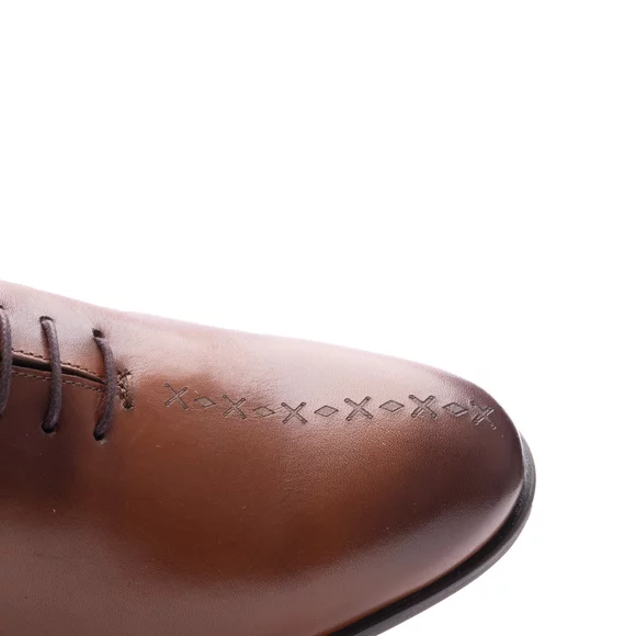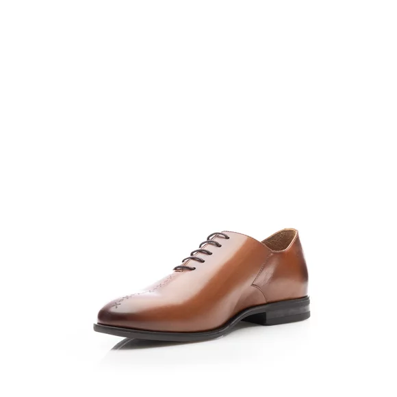 - Pantofi eleganţi pentru bărbaţi din piele naturală box. Acest model clasic se potriveşte pentru o ţinută elegantă datorită inserție cu laser în partea din față și pe partea laterală exterioară