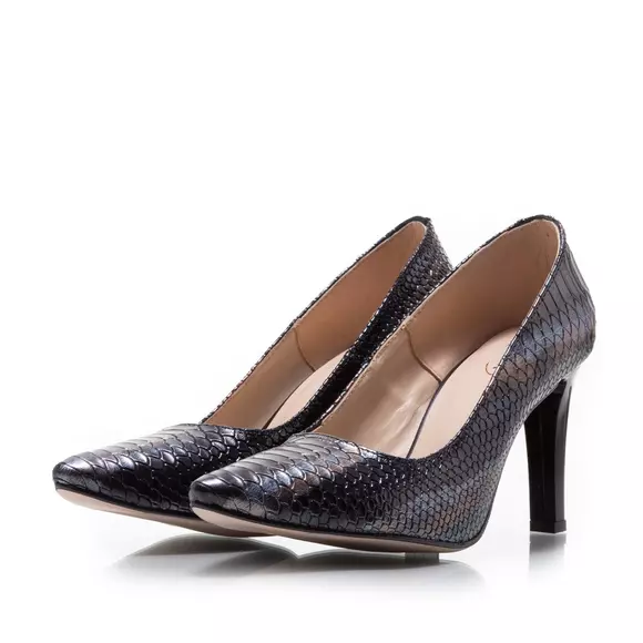 - Pantofi stiletto damă din piele naturală box croco cu vârful ascuțit. Pantofii au un toc de 8 cm, fiind foarte comozi și ușor de asortat unei ținute elegante,office sau casual.