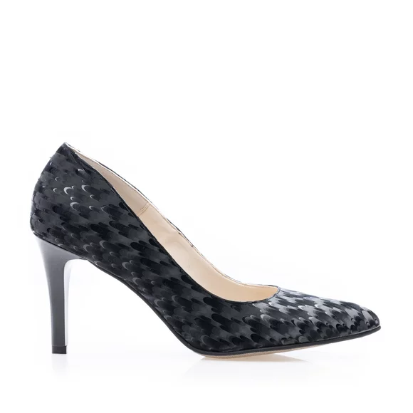 Pantofi stiletto damă din piele naturală - 3527 Negru Velur 3D