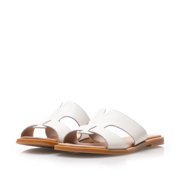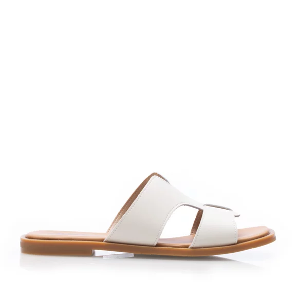 Saboți damă din piele naturală - 4036 Alb Murdar Box
