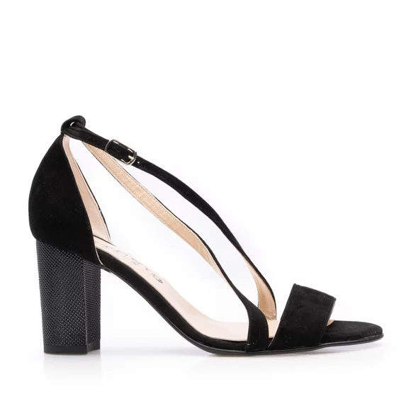 Sandale elegante damă cu toc din piele naturală - 22282 Negru Velur