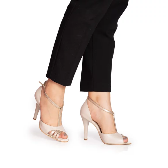 Sandale elegante damă cu toc din piele naturală - 49721 Bej Box Sidefat