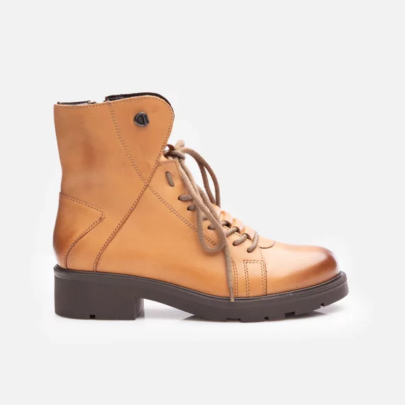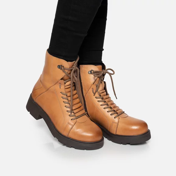 Ghete damă din piele naturală, Leofex - 349 Cognac Deschis Nabuc