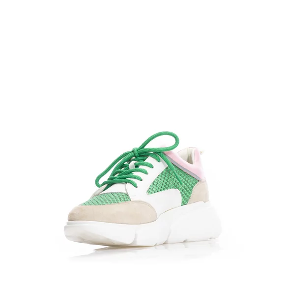 Pantofi sport damă din piele naturală, Leofex - 238 Alb+Verde Box Mash