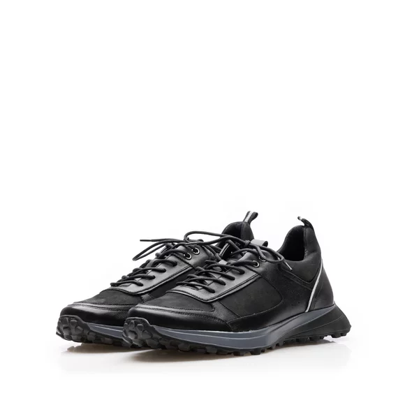 Pantofi sport barbati din piele naturala, Leofex -574 Negru Box Nabuc
