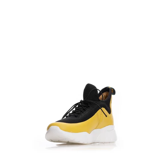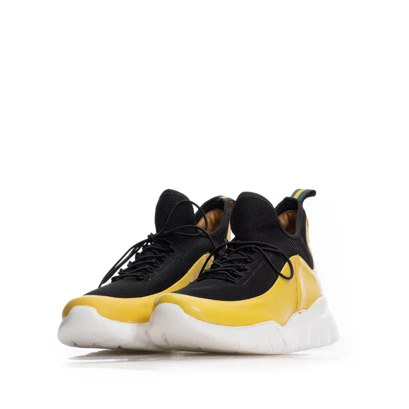 Pantofi sport bărbați din piele naturală, Leofex - Robert Galben Negru Box+Mash