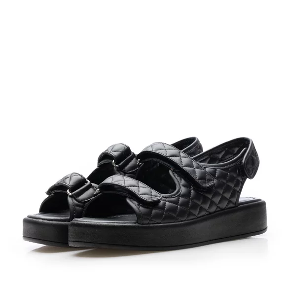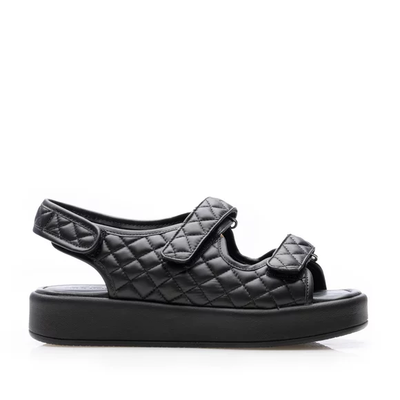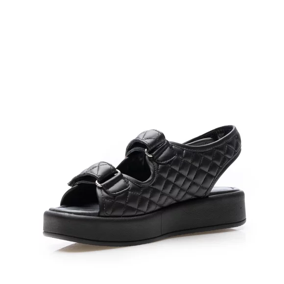 Sandale cu talpă groasă damă din piele naturală, Leofex - Mostră Sanda Negru Box