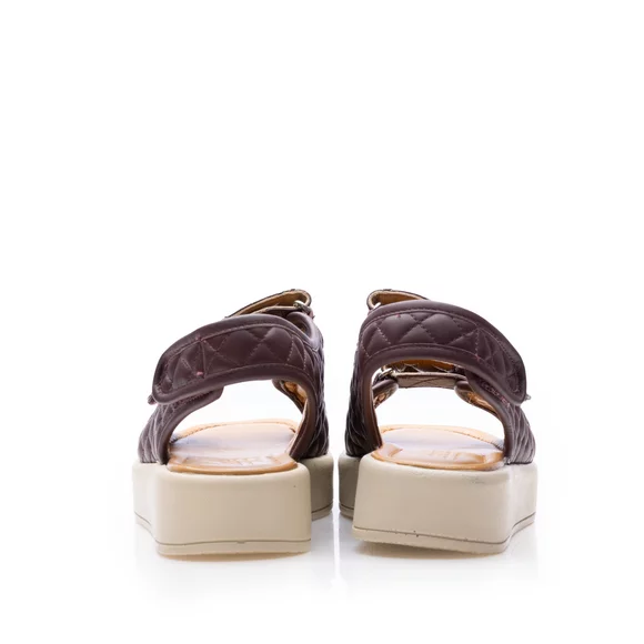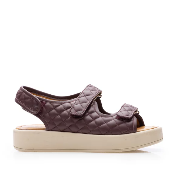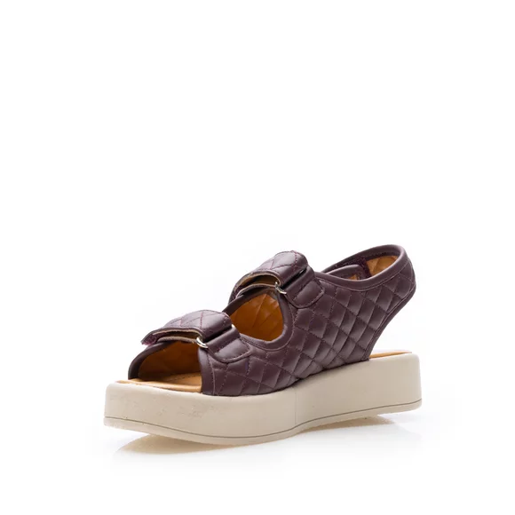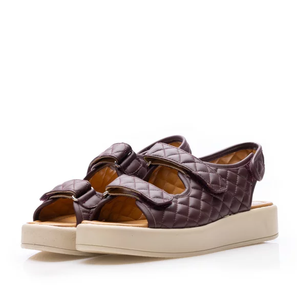 Sandale cu talpă groasă damă din piele naturală, Leofex - Mostră Sanda Vișiniu Box