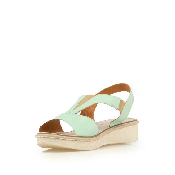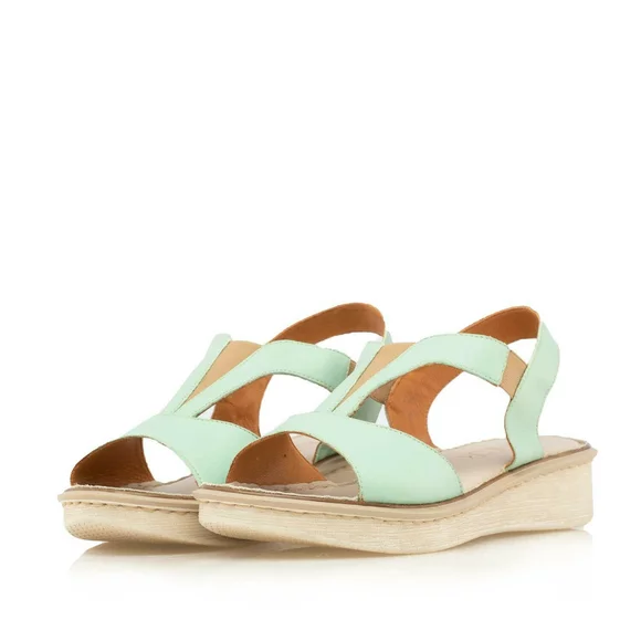 Sandale cu talpă joasă damă din piele naturală, Leofex - 495 Verde Deschis Box