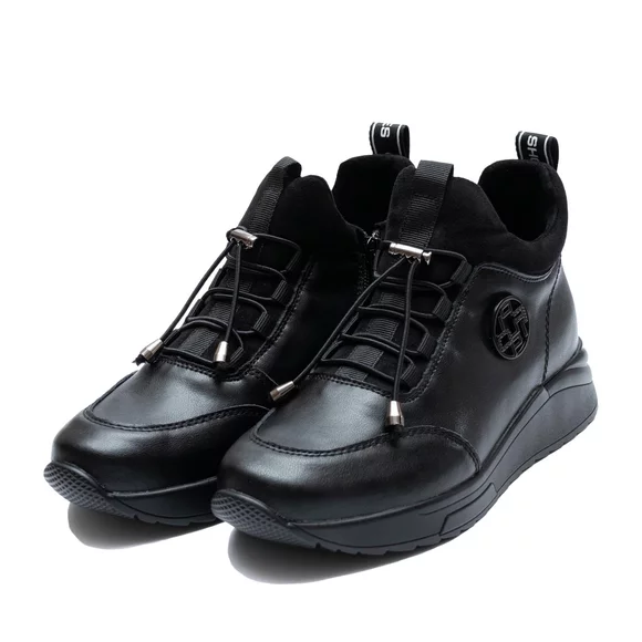 Sneakers damă din piele naturală - 3301 Negru Box Velur