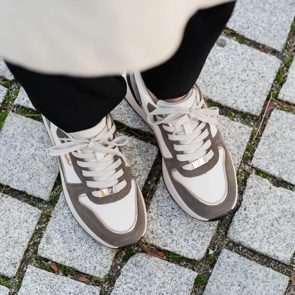 Sneakers damă din piele naturală - 3499 Bej+Gri Box Velur