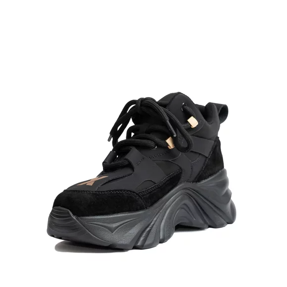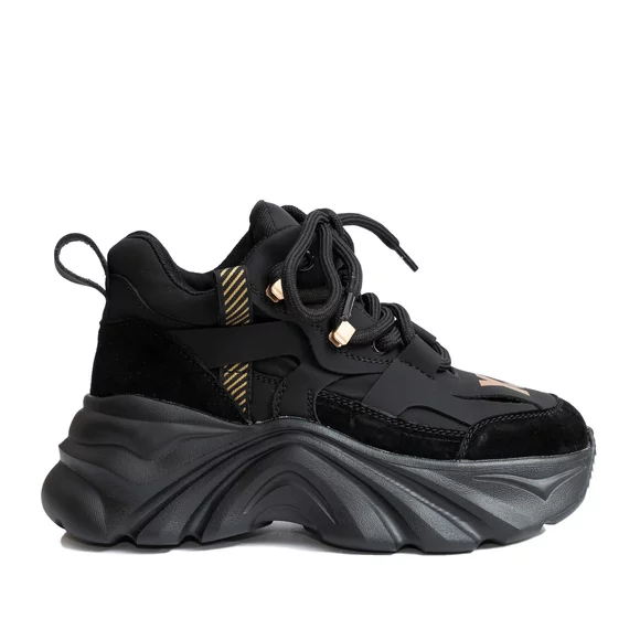 Sneakers damă din piele naturală, Gryxx - 4429 Negru Velur Mash