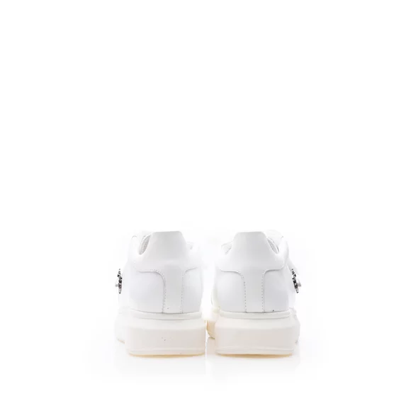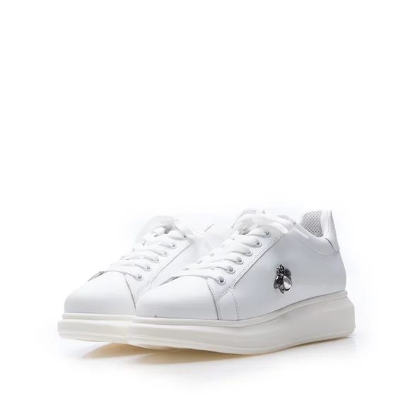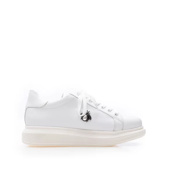 - Sneakersi damă din piele naturală box. Acești pantofi au talpa cu platformă și accesoriu pe partea laterală.